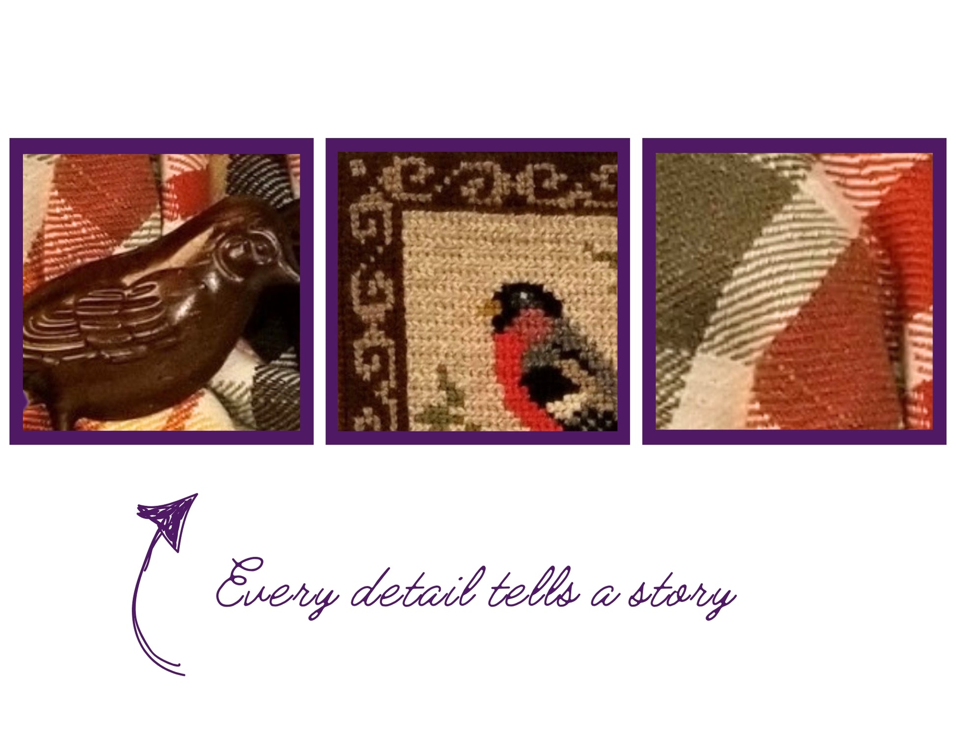 The cozy and colorful bullfinch needlepoint inspired this lovely little vignette! An avid feathery-friend admirer, I have always thought of birds as a symbol of new beginnings, hope and freedom.