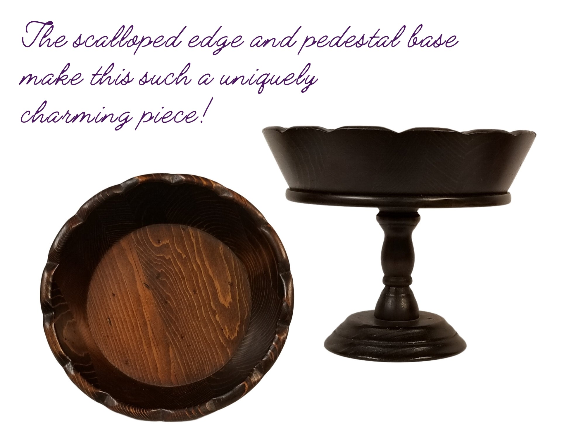 Measurements: Wood pedestal bowl: 9.5" diameter x 7 1/2" tall